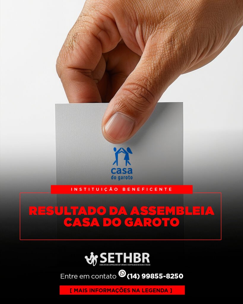 Trabalhadores aprovam proposta em Assembleia Online do SETHBR com 86% de votos favoráveisBauru e Região O SETHBR (Sindicato dos Empregados em Turismo e Hospitalidade de Bauru e Região) informa que foi concluída com sucesso a apuração da Assembleia Geral Extraordinária realizada de forma online. O processo de votação, que garantiu agilidade e segurança aos participantes, […]